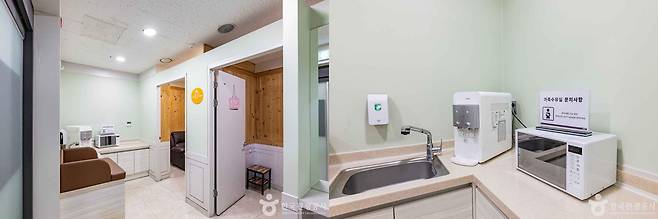 주요 시설인 수유실은 유모차가 들어갈 만큼 공간이 넓고, 문과 잠금장치가 있어 더욱 편안하게 이용할 수 있다. 수유실 외부에도 아기 의자와 소파, 전자레인지와 정수기 등이 구비되어 있어 분유를 타거나 이유식을 준비하기에도 편리하다.