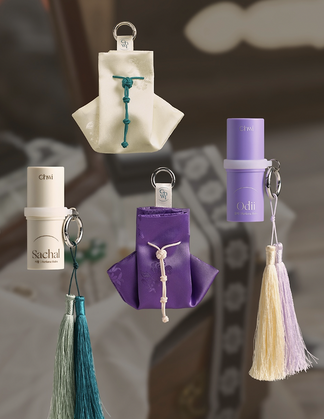 뿐만 아니라, '취 CHWI'는 밤 제형의 향수를 휴대하기 편리하게 하는 키링을 전통 노리개를 모티브로 만들기도 합니다. 헤일리 비버가 론칭해, 전세계적인 주목을 받은 뷰티 브랜드, '로드 스킨 (Rhode Skin)'의 립밤 폰케이스를 연상시키는 참신함에 한국 전통의 아름다움을 더한 것이죠. 당연히, 해외 고객들도 론칭 초반부터 구매 문의를 꾸준히 하고 있습니다.