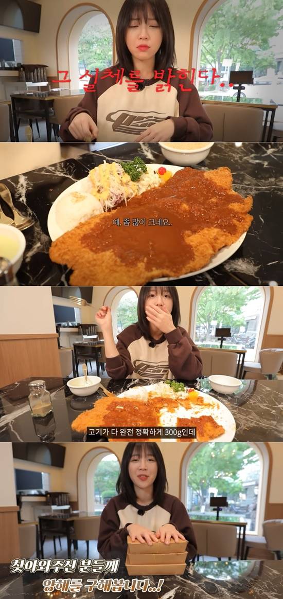 본격적으로 시식에 들어간 쯔양은 이전보다 두꺼워진 돈가스를 칼로 썰며 또 한 번 놀랐다. 그리고는 "만족 만족"이라고 외치며 미소 지었다.