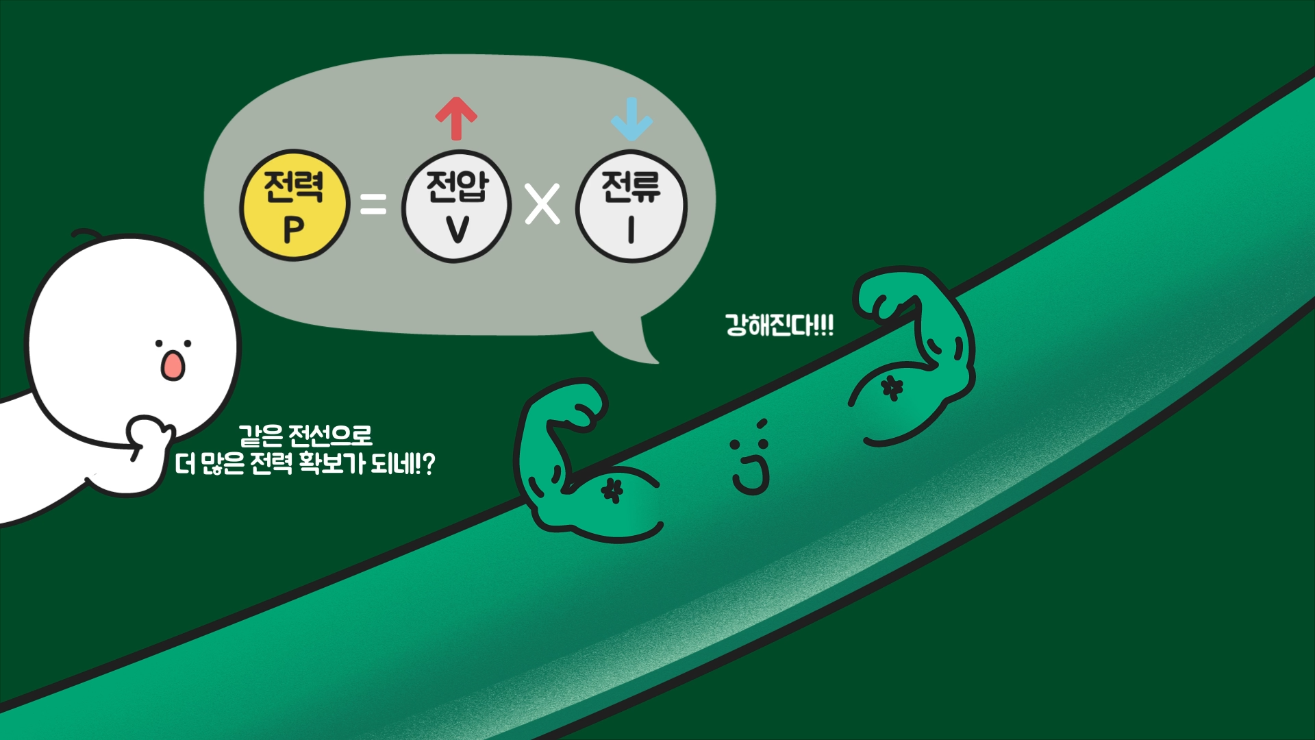 이 사업이 성공할 시 여러 장점이 있었기 때문인데, 전압을 높이면 전력(P)은 전압(V) x 전류(I)의 값과 같다는 공식에 따라서 높인 전압만큼 전류를 낮출 수 있었고, 이에 따라 같은 전선에서 더 많은 전력을 보낼 수 있었습니다. 아울러 전압을 높인 만큼 전압강하율도 낮아지게 되어 안정적으로 전기를 공급할 수도 있었습니다.
