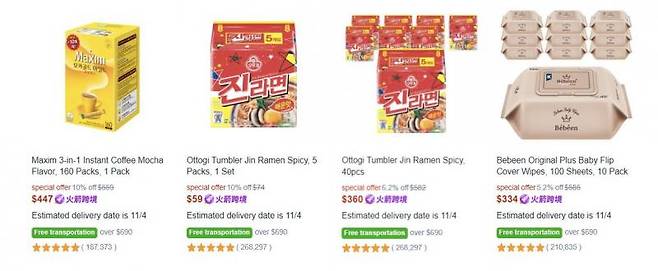대만에서 직구로 구매하는 것이 더 싼 제품은 또 있다. 마찬가지로 대만 쿠팡 랭킹에서 상위권에 이름을 올리고 있는 농심 신라면 30팩 1세트의 가격은 449대만달러(한화 약 1만9841원)로 국내 판매가격 2만4290원보다 18% 더 싸다.