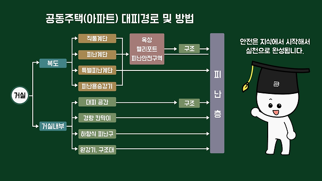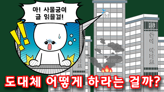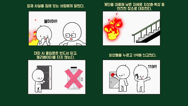 아파트에 따라 차이가 있을 수 있으므로 내가 사는 아파트의 대피경로와 방법을 아는 것이 가장 기본이고, 화재 시 상황을 살펴서 대피해야 한다는 사실을 꼭 기억하길 바랍니다. 궁금증이 해결되셨나요?