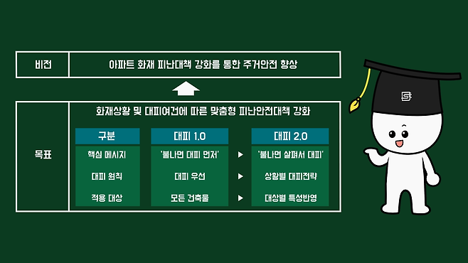 즉, 불나면 대피 먼저라는 행동 요령은 대부분 상황에서 유효하나 무리한 대피보다 실내 구조요청 및 대기 등이 오히려 안전한 상황일 수 있으므로 불나면 살펴서 대피하는 것이 더욱 적절합니다.
