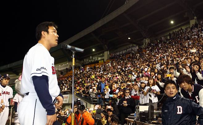 잠실구장 장내 아나운서의 목소리가 카랑카랑 흘러나왔다. 이 방송 목소리는 지하철 잠실종합운동장역 일대에도 울려 퍼졌다. 동시에 두산 직원들이 야구장 밖으로 달려 나갔다. 기념비적인 홈런볼을 찾기 위한 대작전이 시작됐다. 영구보존할 가치가 있는 공이었다.
