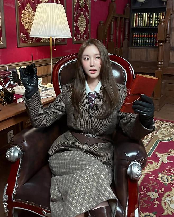 브브걸 민영이 클래식 무드의 체크 수트로 완성한 셜록 변신 룩을 선보였다. 고풍스러운 서재를 배경으로 앉은 민영은 마치 추리 소설 속 주인공처럼 분위기를 압도했다. 무심한 듯 우아한 표정과 손끝에 쥔 만년필, 그리고 손에 꼭 쥔 레드 커버 노트까지, 디테일 하나하나에 집중한 스타일링이 돋보인다.