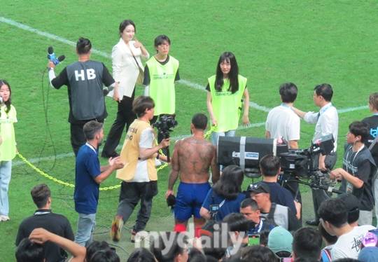 [마이데일리 = 서울월드컵경기장 이현호 기자] 엘링 홀란드(맨시티)와 멤피스 데파이(아틀레티코 마드리드)가 유니폼을 벗어 한국 팬들에게 선물했다.