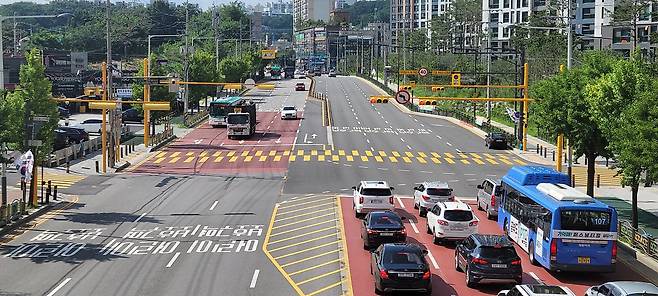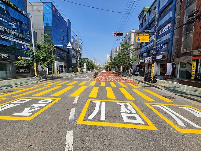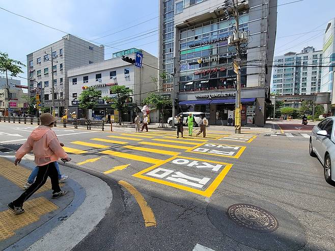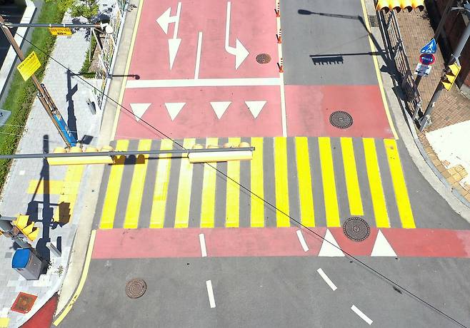 어린이보호구역에 노란색 횡단보도 도입