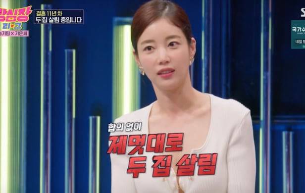 2022년 7월, SBS 예능 '강심장 리그'에 출연한 기은세는 충격적인 고백을 했습니다. "현재 두 집 살림 중"이라는 것이었습니다.