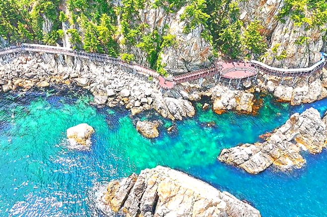 오랜 시간 닫혀 있던 만큼, 풍경은 인위적인 손길보다 자연의 결이 먼저 느껴진다. 데크 아래로는 기암괴석이 이어지고, 그 너머로는 동해의 수평선이 끊임없이 펼쳐진다. 걷는 동안 시야를 가리는 구조물이 거의 없어, 바다와 마주하는 감각이 유난히 또렷하다.