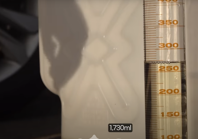 급가속과 고 RPM 주행을 한 결과를 살펴보면 2.5L의 연료가 소모된 모습을 볼 수 있었습니다. 연비 주행을 하였을 때는 1.730ml가 소모된 것에 비하면 동일한 구간과 동일한 운전자, 동일한 차량으로 주행을 한걸 생각해 본다면 훨씬 많은 연료가 소모가 된 것을 볼 수 있었습니다.