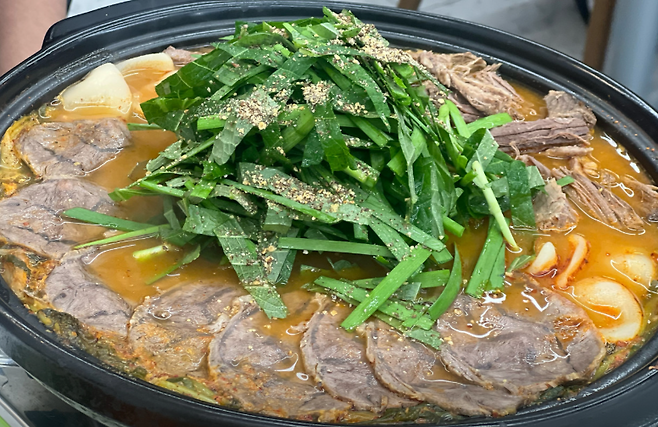 ▶ 명가소고기보양탕 – 차돌양지와 채소를 푹 끓여낸 대표 메뉴 (15,000원)