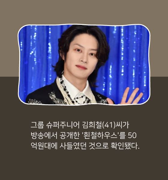 그룹 슈퍼주니어 김희철(41)씨가 방송에서 공개한 '흰철하우스' 매입가는 57억원인 것으로 확인됐다. /사진=KBS joy