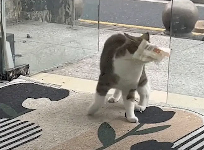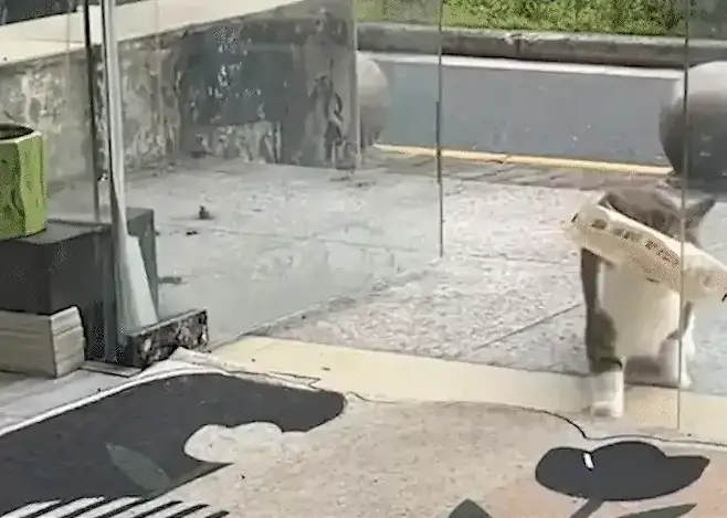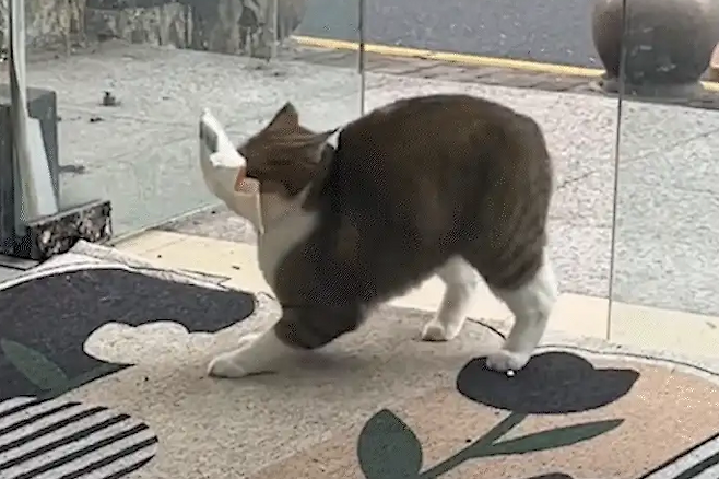 더욱 웃긴 점은, 그 유리문이 사실 활짝 열려 있었다는 것입니다! 하지만 순진한 이 고양이는 그 사실을 전혀 모른 채, 허공을 향해 고개를 좌우로 흔들며 문과 씨름했습니다.