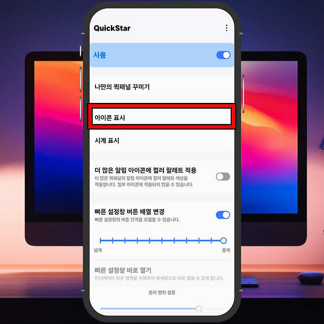 퀵스타 안에는 '아이콘 표시'라는 메뉴가 있습니다.