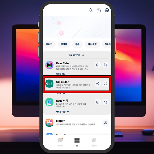 2) 앱 안에서 '퀵스타(QuickStar)' 모듈을 찾아 들어가 주세요.