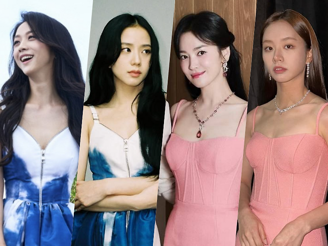 최근에도 비슷한 일은 종종 벌어졌는데요. 주얼리 브랜드 홍보차 스페인을 방문한 배우 송혜교가 입은 핑크색 드레스가 큰 화제를 모았는데, 이 드레스가 2022년 혜리가 시상식에서 입었던 바로 그 드레스였던 것. 세련된 실루엣과 로맨틱한 컬러감이 돋보이는 이 드레스는 두 배우의 이미지에 따라 전혀 다른 분위기로 완성됐죠. 이를 두고 팬들은 '같은 옷, 다른 느낌'을 주제로 각자의 매력을 분석하며 환호하기도 했습니다. 같은 드레스, 다른 순간. 누가 입었느냐에 따라 전혀 다른 이야기를 만들어낸 스타들의 겹치기 드레스 착장 사례들을 모아봤습니다.