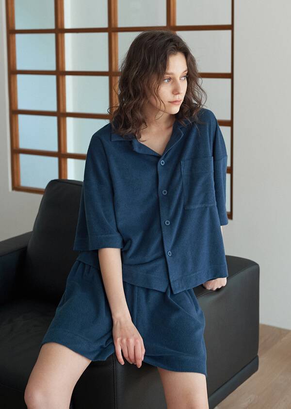 흡한 속건의 테리 소재로 가벼우며 부드럽고 쾌적한 착용감을 지닌 제품이다. 오버핏의 반팔과 반바지의 조합으로 시원하게 입을 수 있으며, 남녀 공용 착용이 가능하다. 브랜드 라벨을 목뒤 바깥 면에 부착하여 피부 자극 없이 착용 가능하고 탈의 또는 샤워 시에 라벨을 이용하여 옷을 고리에 걸 수도 있다. 하의의 허리는 넓은 고무 밴딩으로 되어있어 압박감 없이 편하게 착용할 수 있다. 상의와 하의의 후면에 포켓을 달아 실용성을 겸비하여 편의성을 높였다. 색상은 샌드와 네이비 두 컬러이다.