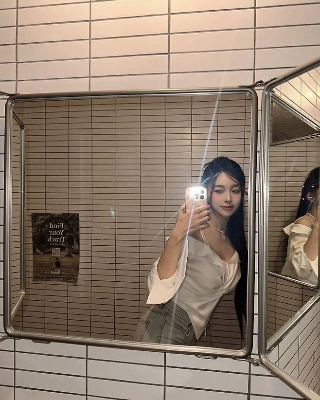 한초임이 공개한 미러 셀카가 단번에 시선을 사로잡는다. 베이지 타일 벽을 배경으로 촬영된 이번 사진은 조명에 반사된 렌즈 플레어와 함께 도회적이면서도 감각적인 무드를 자아낸다. 오프숄더 디자인의 블라우스와 슬림한 데님 팬츠의 조합은 그녀 특유의 우아한 분위기를 배가시키며, 네티즌들 사이에서 “여신 비율 무엇?”, “어깨 라인이 예술”이라는 반응을 이끌어냈다.