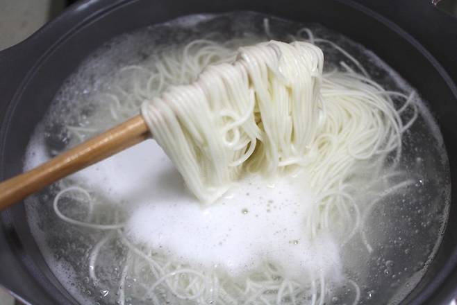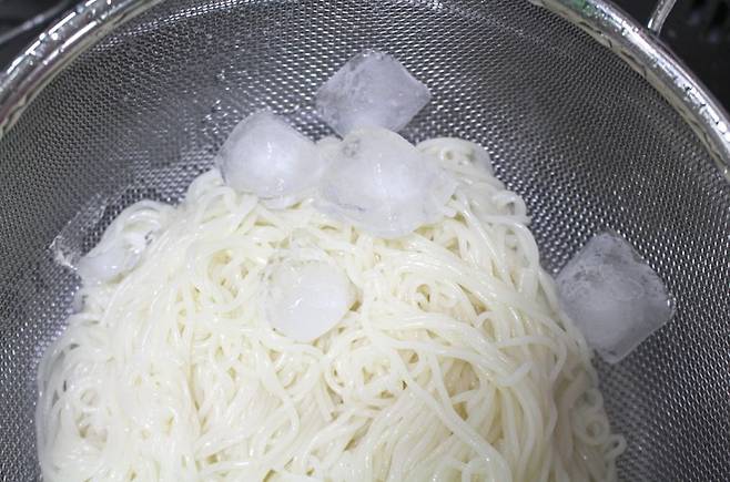 저는 소면을 탱글하게 삶아서 얼음물에 몇 번 휘저어가며 헹궈요. 그렇게 하면 면발이 살아나고, 국물도 탁해지지 않아서 훨씬 깔끔하게 즐길 수 있어요.