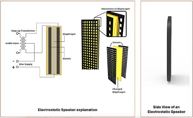 기존 스피커는 코일과 자석을 이용해 소리를 내는데, 이 방식은 부품의 무게가 크고 움직이는 부분이 많아 왜곡이 발생할 가능성이 높다는 것이 회사 측의 설명이다. 또한, 헤드레스트에 설치된 기존 스피커는 특정 주파수 대역에서 제한이 있으며, 음향이 전달되는 범위가 좁다는 단점이 있다. 이에 반해 정전식 스피커는 다이어프램을 헤드레스트 전체에 맞춰 제작할 수 있어, 각 승객이 균형 잡힌 음향을 경험할 수 있도록 한다.