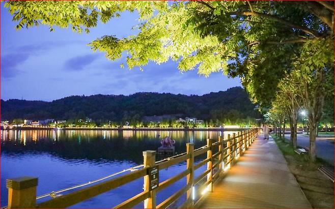 먼저 세상을 떠난 남편을 위해 아내가 자신의 머리카락으로 미투리를 엮어 남긴 사연이 바로 월영교의 아름다운 곡선 안에 담겨 있습니다.낮에는 강 위를 따라 시원한 바람이 부드럽게 흘러가고,저녁이면 조명 아래에서 더욱 로맨틱한 풍경이 펼쳐집니다.