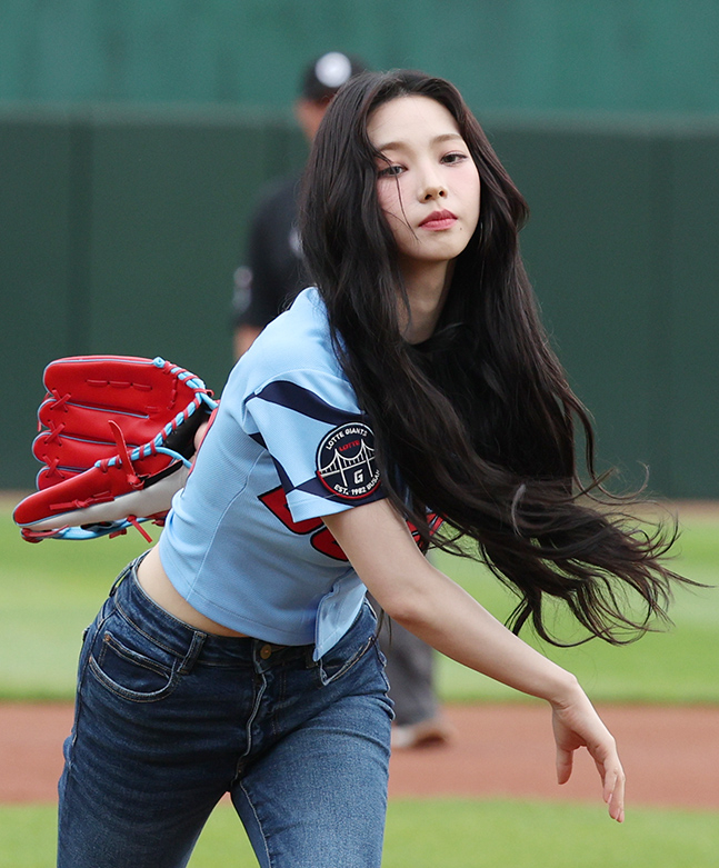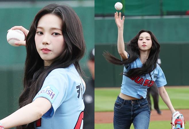 지난 9일 부산 사직야구장에서 열린 열린 2024 KBO리그 롯데 자이언츠와 SSG 랜더스의 더블헤더 2차전에 시구자로 나선 걸그룹 '에스파'의 리더 카리나에 대한 반응이 뜨겁다.