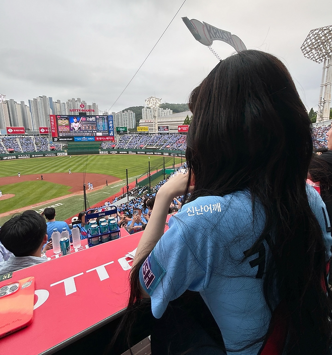 여차하면 생애 첫 시구를 놓칠 위기에 쳐했던 카리나는 8일 소통 플랫폼인 버블을 통해 자신을 보러 와주는 팬들도 많을 텐데 꼭 시구를 하고 싶다는 의지를 드러낸 바 있다. 당일 부산 팬사인회를 마치고 사직야구장을 찾은 카리나.