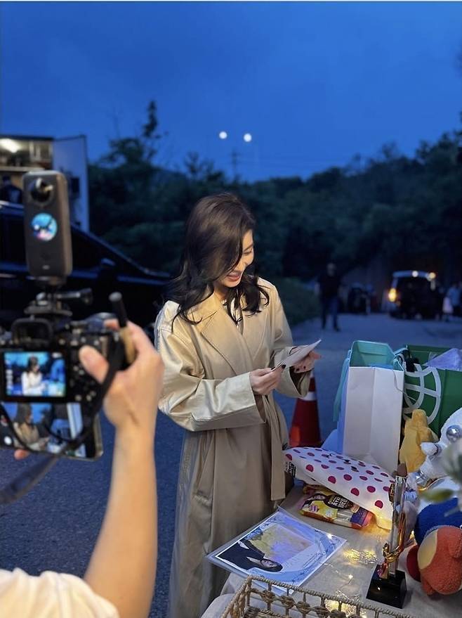 배우 하지원이 최근 인스타그램에 "🥤🍪🎬🎁💛고마워요~~"라는 글과 함께 여러 장의 사진을 게재했습니다.