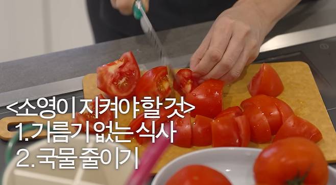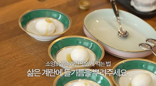 관리를 시작한 고소영이 택한 아침은 바로 '삶은 달걀'과 '토마토 주스'였다. 고소영은 삶은 달걀에 들기름을 두르고 소금 후추를 뿌려 먹었다.