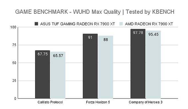ASUS TUF GAMING RADEON RX 7900 XT의 강점은 안정적인 온도와 낮은 소음 그리고 오버클럭에 있다.