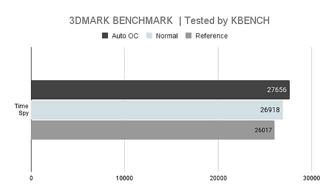 팩토리 오버클럭은 대부분 사용자가 원하는 수준 보다 낮게 셋팅되는 것이 일반적이니 어쩔 수 없는 결과다. 개별 제품 모두 일일이 검사하고 최고 클럭을 부여하는 것은 아니라서 안정성을 충분히 보장하려면 어쩔 수 없다.