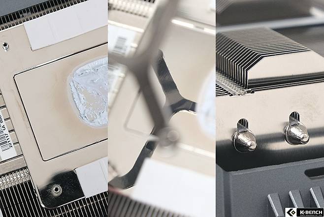 쿨러의 히트싱크 구조는 7개의 굵은 히트파이프가 GPU 열을 전달하는 히트 스프레더와 연결된 방식으로 설계됐다. 이 구조는 새롭거나 혁신적인 변화는 아니지만 대형 히트싱크와 히트 파이프의 조합으로 쿨링 효율이 충분히 입증된 조합이다.