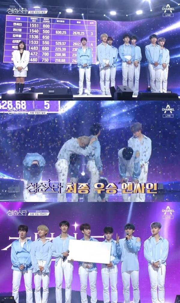 [헤럴드경제 = 서병기 선임기자]채널A ‘청춘스타’ 결승전에서 아이돌파 엔싸인이 최종 우승하며 상금 1억원의 글로벌 청춘스타의 탄생을 알렸다.