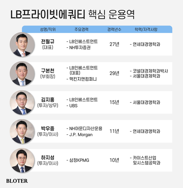 구본천 부회장은 맥킨지앤컴퍼니와 한국개발연구원(KDI) 등을 거쳐 2001년 LB인베스트먼트에 합류해 2003년부터 대표를 맡았다. 구 부회장은 구인회 LG그룹 창업자의 4남인 구자두 LB인베스트먼트 회장의 장남으로, 서울대 경제학과를 졸업하고 미국 코넬대에서 경제학 박사 학위를 취득했다. 구 부회장은 직접 운용 인력으로도 참여하며 LB PE의 성장에 힘을 보태고 있다.
