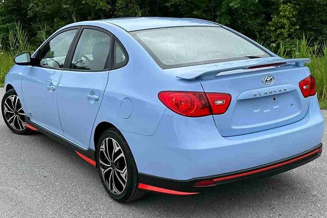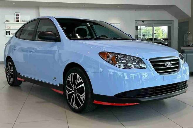 가장 눈에 띄는 변화는 바로 외관의 컬러입니다. 복원된 아반떼는 현대차의 고성능 라인업인 N 디비전의 상징적인 퍼포먼스 블루 컬러로 새롭게 도색되었습니다. 이 색상은 아반떼의 기존 이미지에 신선한 충격을 주며 새로운 생명력을 불어넣었습니다.