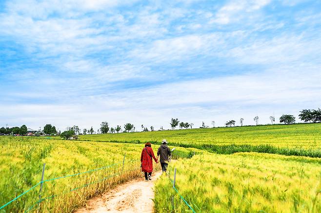 청보리밭 한가운데로 조성된 산책로는 가족, 연인, 친구와 함께 걸으며 자연을 만끽할 수 있는 최적의 힐링 코스다.