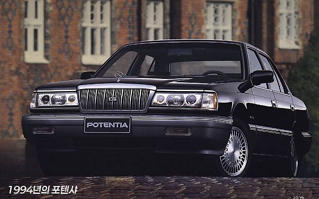 현대의 그랜저와 대우의 임페리얼 등의 기함에 대항할 자체 생산 최고급 대형 세단 모델이 없었던 기아는 마쓰다의 대형 세단 5세대 루체(Luce; Mazda 929; HC)를 들여와 라디에이터 그릴의 크기를 키우고 그릴의 디자인도 미국의 링컨 타운카 스타일의 수직 리브 형태로 바꿔서 포텐샤(T-car) 라는 이름으로 내놓습니다. 원형 모델 마쓰다 루체는 그 시기에 미국에서 팔리던 양산형 세단 중에서 차체 강성이 가장 높은 차라는 평판이 있었고 육중한 차체를 가지고 있엇습니다.