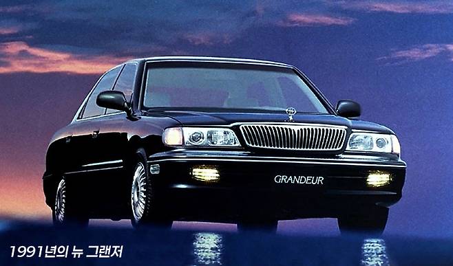 그리고 1991년에는 현대자동차에서 뉴 그랜저라는 이름으로 2세대 그랜저(L2)가 나옵니다. 역시 미쓰비시와 공동개발이었지만, 1세대 그랜저의 좁은 차체와는 다르게 1,810mm의 넓은 차체 폭으로 대형 승용차의 풍모를 갖추고 등장합니다. 각진 이미지의 1세대에 비해 곡선이 가미된 디자인의 뉴 그랜저는 많은 호응을 얻어서 대형 고급승용차의 대중화라는 아이러니한 현상을 만들기도 합니다.