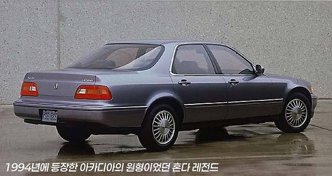 아카디아의 원형 모델이었던 2세대 레전드는 일본에서 1990년 말에 등장했으며, 앞바퀴 굴림방식이면서도 엔진을 후륜구동방식처럼 세로로 탑재하면서도 동력을 앞바퀴로 전달하는 프론트 미드십(front midship) 구조로 인해 휠베이스가 무려 2,910mm이었습니다. 그로 인해 극히 짧은 앞 오버행의 고전적이면서 역동적인 비례가 인상적인 모델이었습니다.