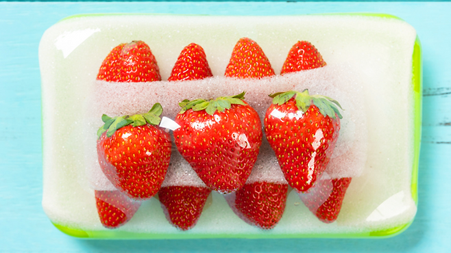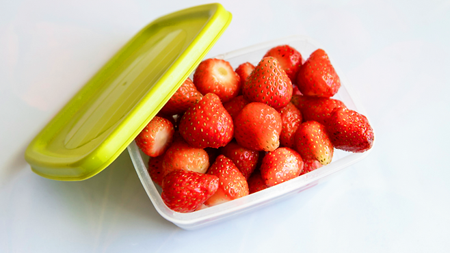 딸기를 산 뒤 플라스틱 팩째 냉장고에 넣는 경우가 많지만, 이 방식은 내부에 습기가 차 곰팡이가 생기기 쉽다. 가장 효과적인 방법은 밀폐용기 바닥에 키친타월을 깔고 딸기를 1단으로 배열한 뒤 뚜껑을 덮는 것이다.