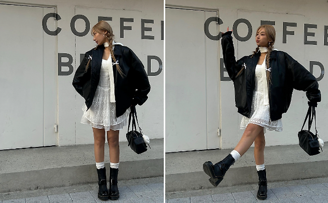 역시 롱부츠는 짧은 하의와 매치했을 때 더 빛을 발휘하죠?