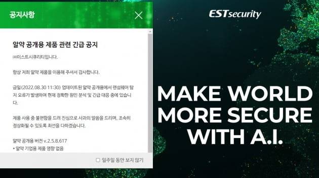 알약 프로그램 개발·운영사인 이스트시큐리티는 긴급 대응 조치에 나섰다.