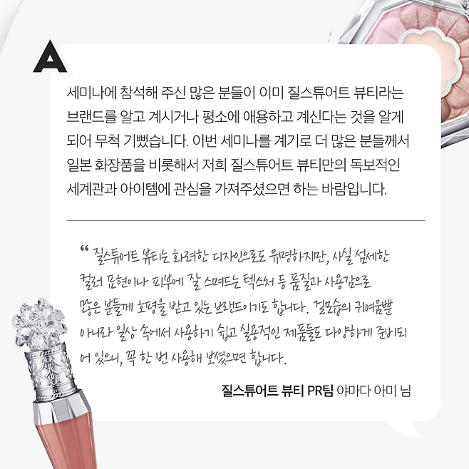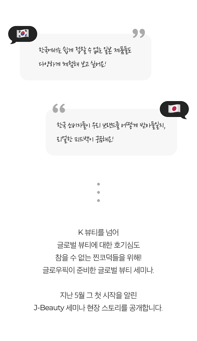 화장품에 대한 열정으로 가득찬 찐 코덕들을 위해 준비한 시간! 아직 한국에 정식 출시하지 않은 일본 화장품들을 직접 체험하며 깊이 있게 경험할 수 있는 행사를 진행했는데요. 오직 글로우픽에서만 경험할 수 있는 특별한 경험! 그 뜨거웠던 현장을 소개할게요!