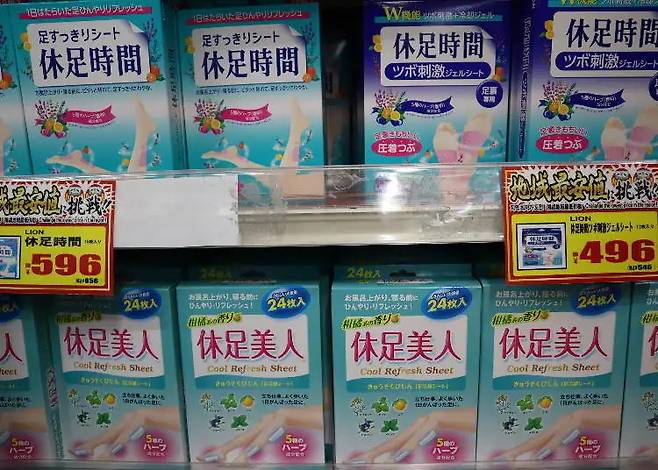 여행의 피로를 풀고 싶을 때에 빼놓을 수 없는 다리 릴랙스 시트. 외국에서도 인기 만점인 ‘휴족 시간’의 경우 일반 타입과 발바닥 전용 타입 등 다양한 종류를 판매하고 있다.