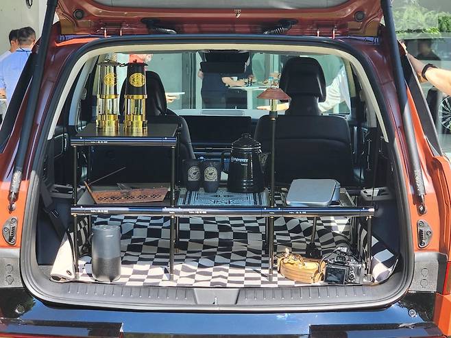 보통 세단이든 suv든 트렁크를 열어보면 차량의 리어 패널 때문에 입구가 다소 좁아지기 마련인데 이 차량은 패널을 극단적으로 줄였기 때문에 큰 짐을 보다 쉽게 열 수 있고 해치를 열어뒀을 때 마치 거대한 어닝으로도 충분히 활용할 수 있습니다.