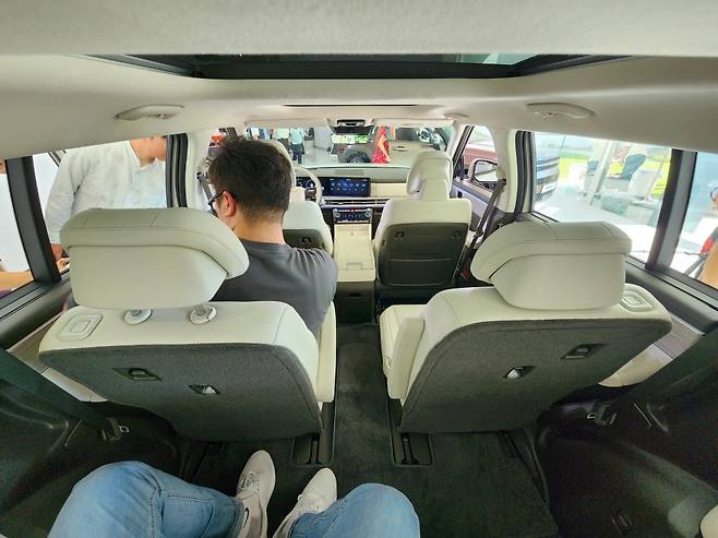 EV9이 처음 출시되었을 때도 후다닥 달려가서 3열에 앉아봤습니다. E-GMP 플랫폼이 들어갔기 때문에 차량 바닥 공간도 충분히 활용할 수 있을 것이고 처음으로 suv 중 쓸만한 3열을 갖춘 차가 나왔나 싶었지만 영 불편해서 앉아 있기 싫더군요. 그 이유가 바닥면의 높아 앉은 자세가 불편하다는 점이었는데 싼타페에서도 역시 동일합니다.