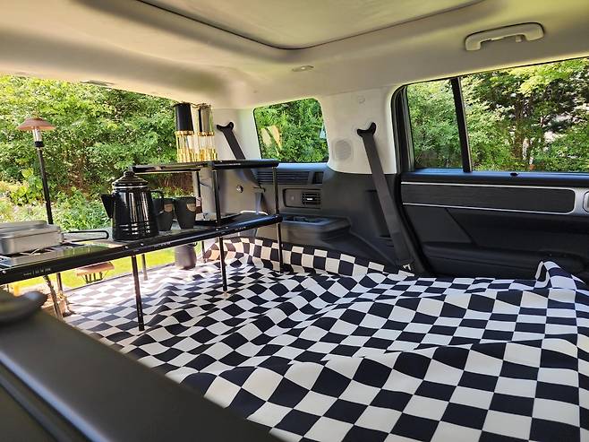 그래서 저멀리 보이는 실루엣을 보고 있다니 처음 든 생각은 '도킹 텐트를 연결해놨나보다' 이었습니다. 그런데 그게 아니고 그냥 리어 해치만 열어둔 것이었죠.