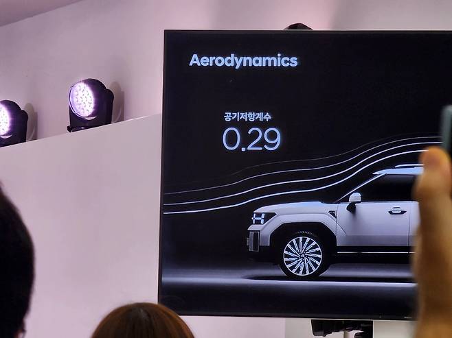 행사에서 차량의 공력 계수가 0.29Cd라는 것을 강조하더군요. 면밀히 살펴보니 이렇게 생긴 차가 이 정도의 계수를 갖는 것이 쉽지 않은 것이 맞고 대단한 수치이긴 하더군요. 참고로 팰리세이드가 0.33이고 공기저항계수를 위해 디자인도 몰빵해버린 아이오닉6가 0.21이니 5세대 싼타페가 얼마나 좋은 수치인지 대충 감이 오실겁니다.