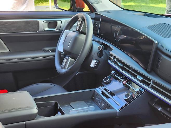실내공간에서 눈여겨 볼 점 중 하나는 스티어링 휠 입니다. 일명 로보캅 스타일이 적용되었는데 다행히 7세대 그랜저와 비슷하지만 조금 개선이 되었습니다. 똑바로 정렬했을 때 6시 방향에 있는 스포크가 문제인데 괜히 여기에 드라이브 모드 버튼이 있어 돌출된 양각의 디자인에서 불필요한 부분을 제거한 음각 디자인으로 변경되면서 스티어링 휠을 돌릴 때 거슬리지 않게 되었습니다. 참 다행이죠?