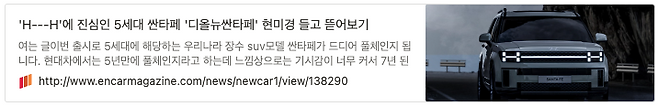 아직 올해가 몇 달 남긴 했지만 지금까지도 앞으로도 현대차 최고의 이슈는 역시나 '싼타페'일거라 생각합니다. 세단에서 중형보다 준대형이 더 잘 팔리는 신박한 상황이 suv에도 이어지게 될텐디 한동안 존재감이 애매하던 4세대 싼타페인 TM의 뒤를 잇는 5세대 싼타페 MX5가 그 주인공이 될겁니다. (이해를 위해 싼타페의 코드를 정리하고 가자면 SM→CM→DM→TM→MX5 이렇게 변경이 되었습니다.)